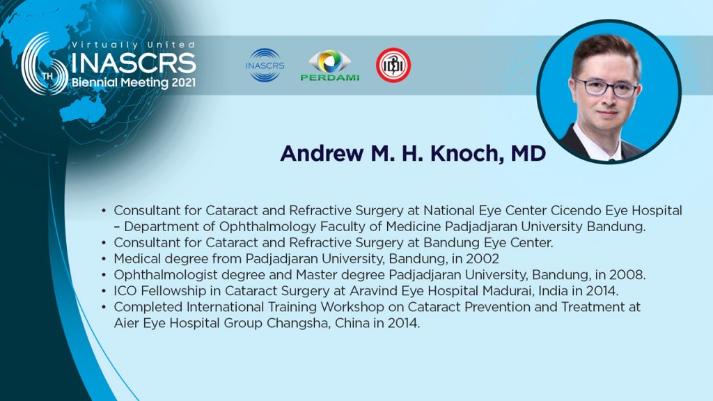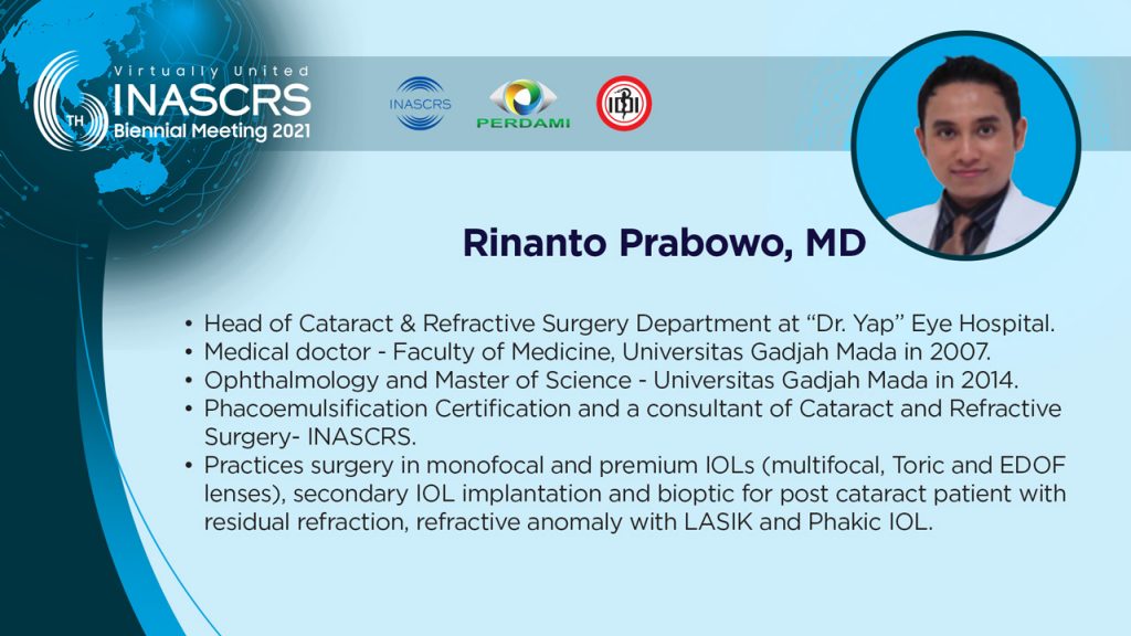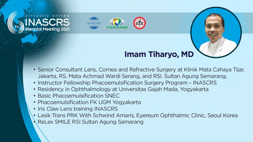 16.00 - 16.05 Optimizing Cataract Surgery Through Advance Technology Imam Tiharyo, MD