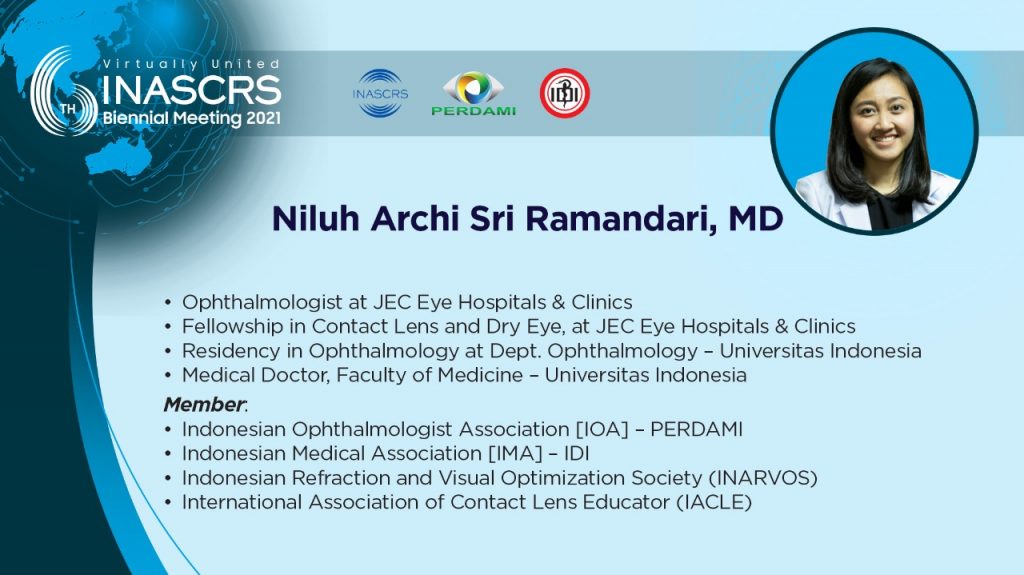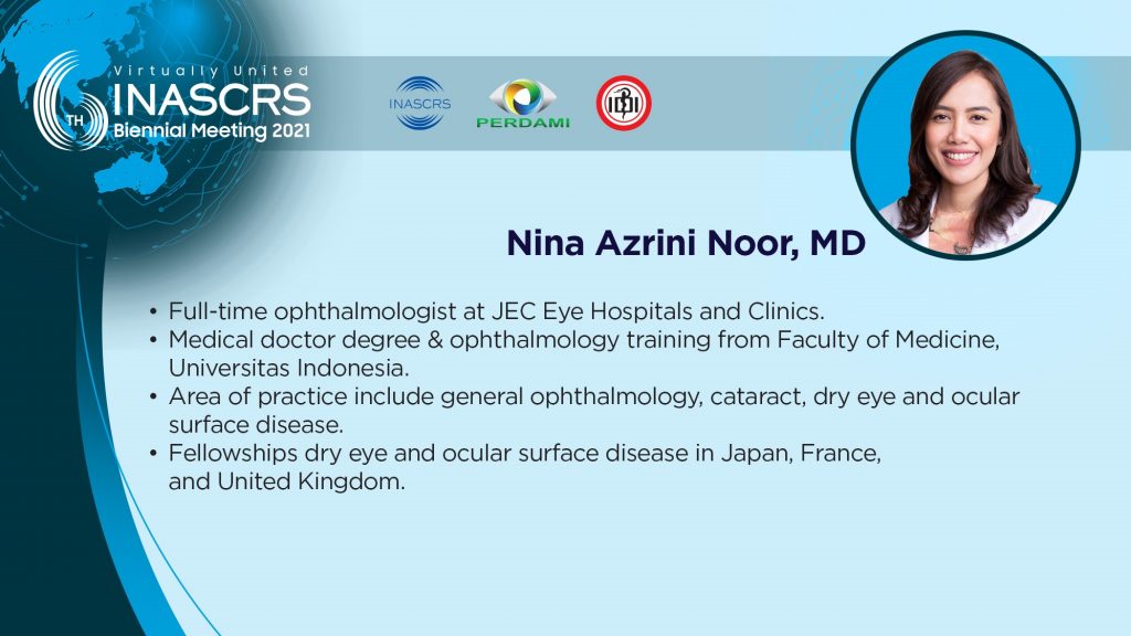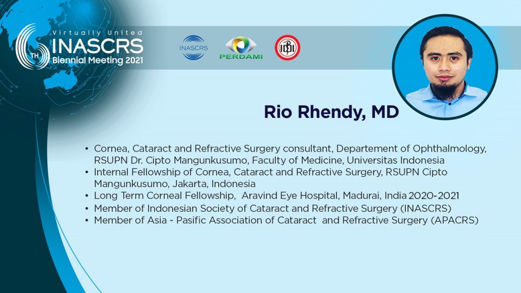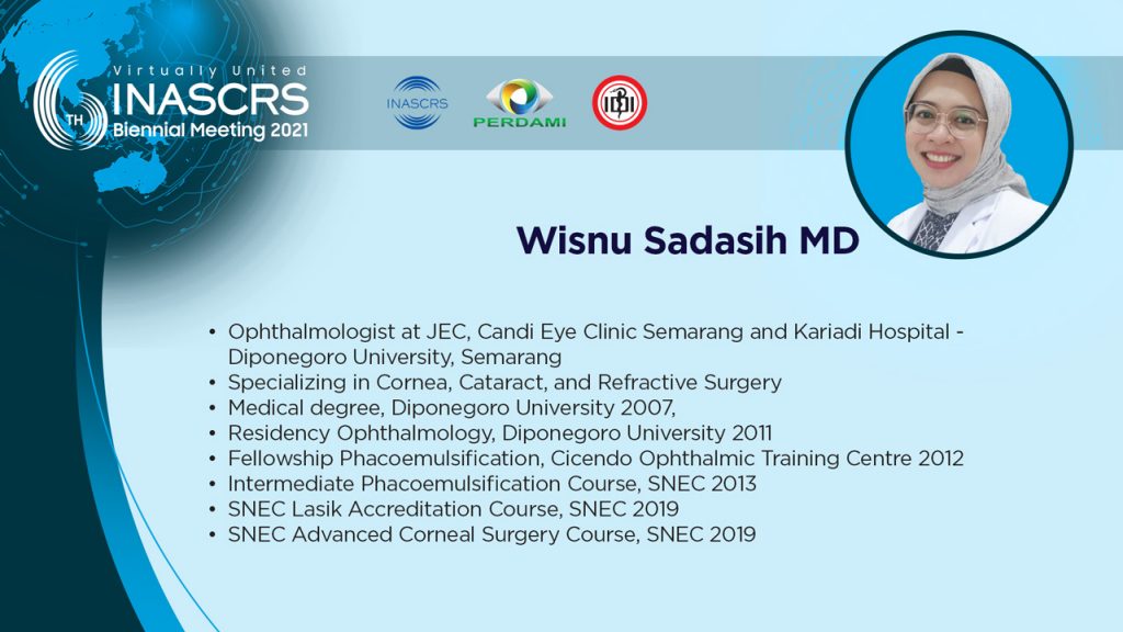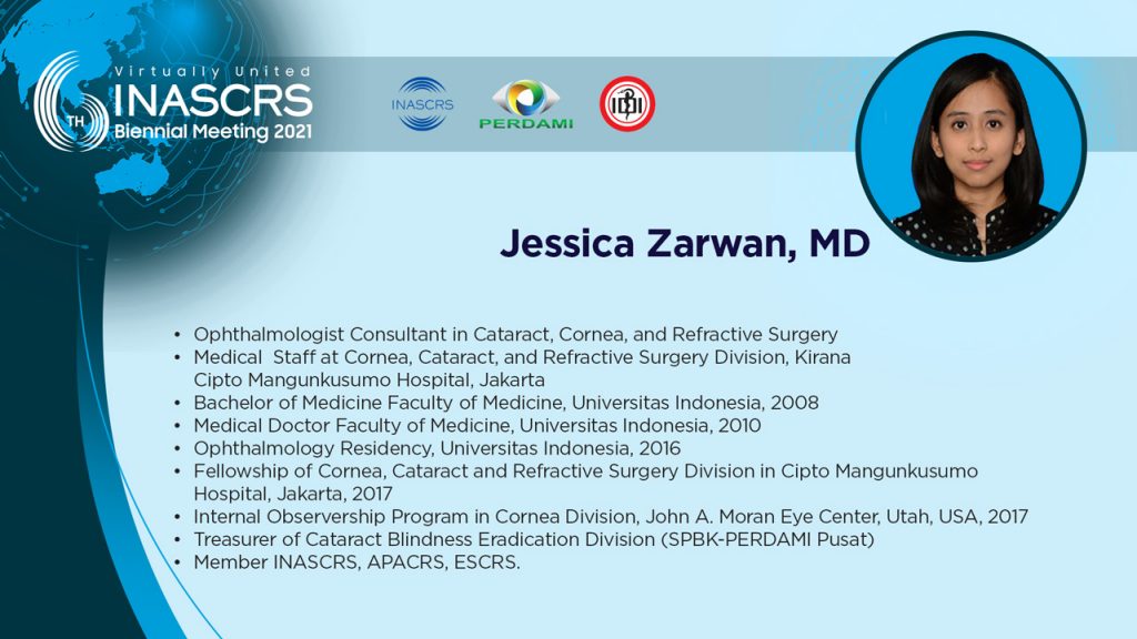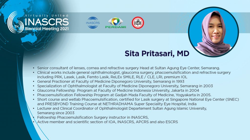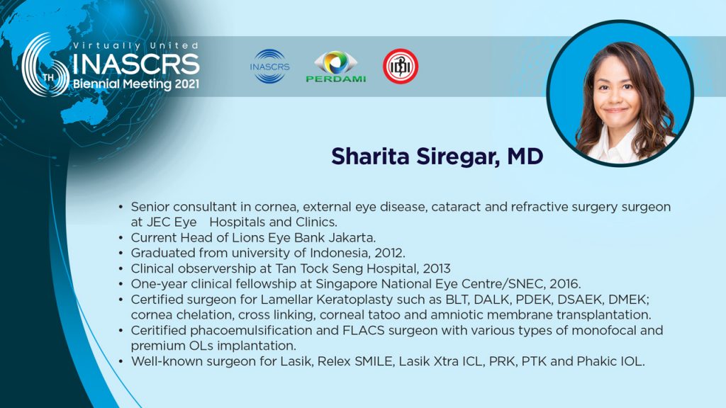 11.30 - 11.40 Artificial Iris in Post Keratoplasty: "Goodbye glare" Sharita R. Siregar, MD