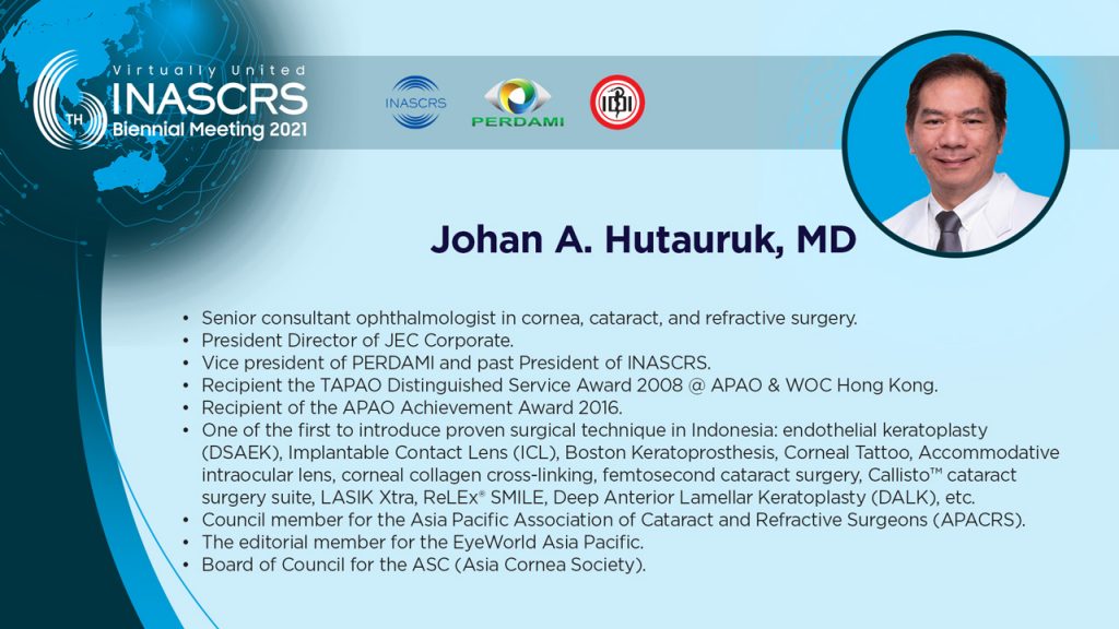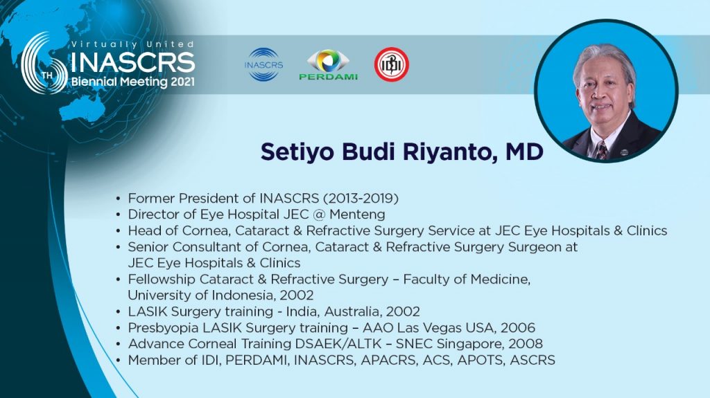 20.10 - 20.30 Refractive Surgery : Beyond PAC LASIK Personal Insight Tjahjono D. Gondhowiardjo, MD