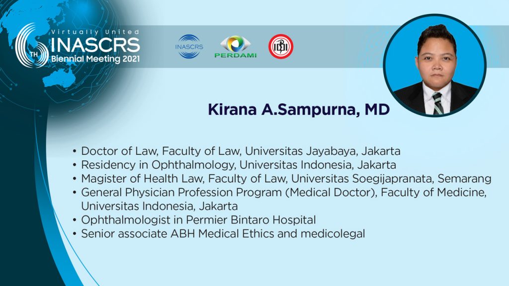 19.35 - 19.50 Ethical Lecture: Indonesian Cataract Surgery -an Update Legal & Ethical Problems Kirana Sampoerna, MD