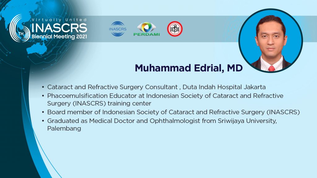 16.05 - 16.20 Anterior Chamber Stability with Active Sentry in Phaco Cataract Surgery - Safe and Efficient Phaco My Experience M. Ikhsan, MD